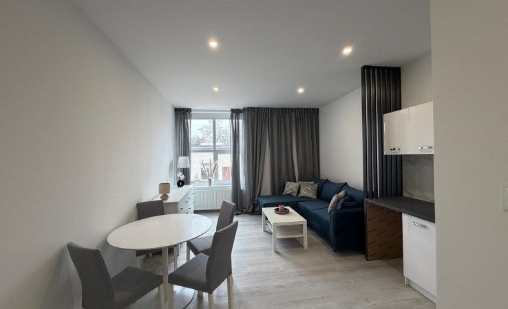 Mieszkanie zostało kompleksowo wyremontowane z dbałością o detale i funkcjonalność przestrzeni. W lokalu znajduje się salon z aneksem kuchennym, oddzielna sypialnia oraz łazienka z prysznicem. Całość została urządzona w nowoczesnym stylu, a wszystkie meble i sprzęty są nowe.