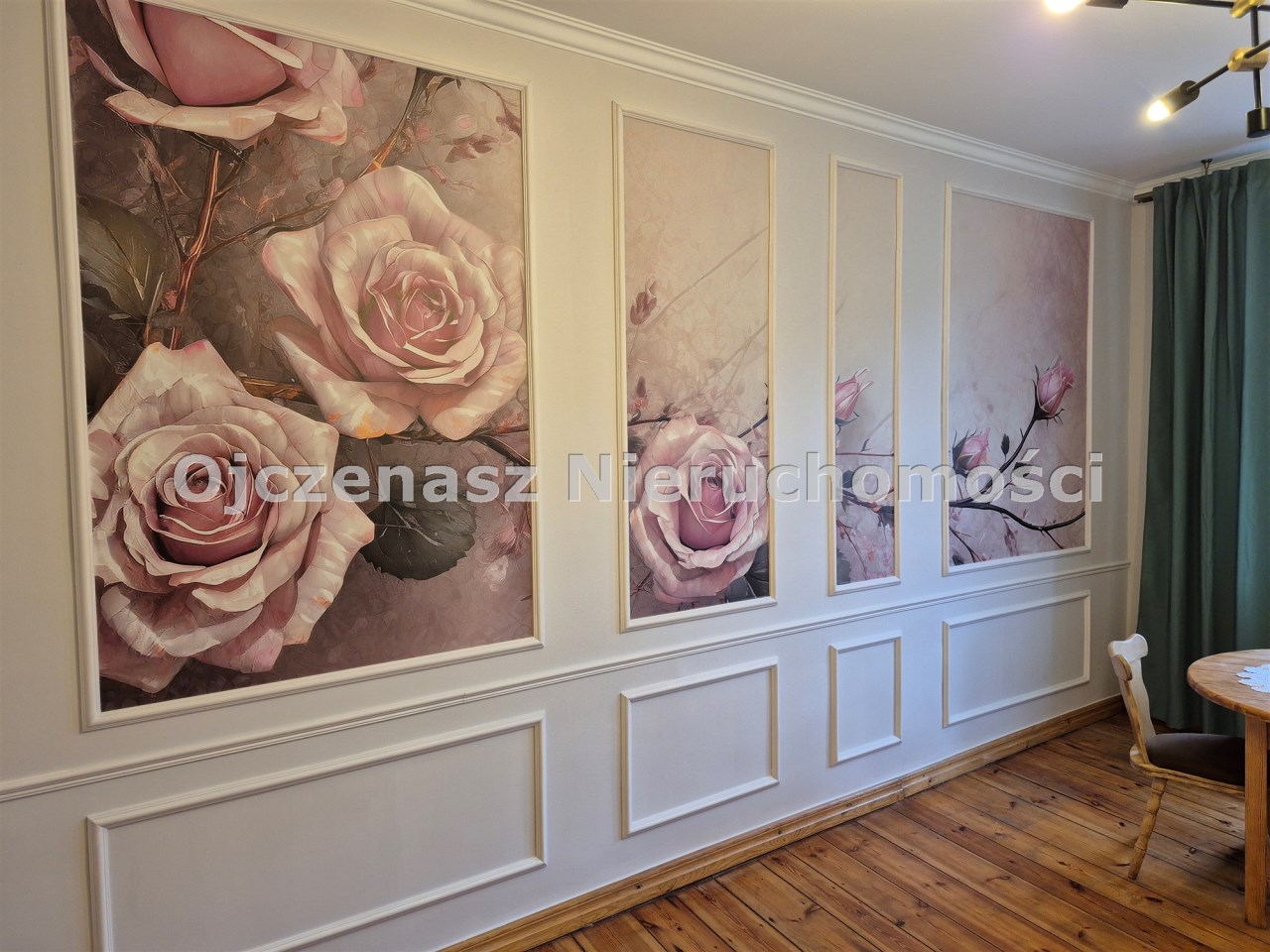 | Podłogi pokoi | kafle, deska drewniana |