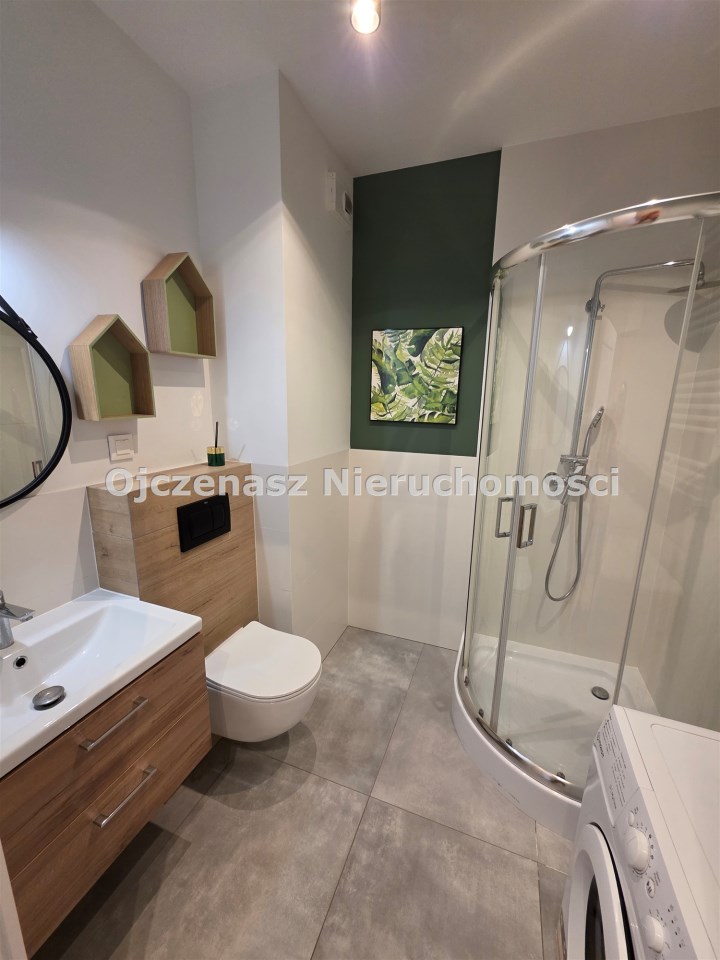 Do wynajęcia kawalerka o powierzchni 33 m², zlokalizowana w bydgoskim Fordonie na osiedlu Przylesie. Mieszkanie znajduje się w nowym budownictwie, na wysokim parterze, na terenie zamkniętym, co zapewnia komfort i bezpieczeństwo mieszkańców.