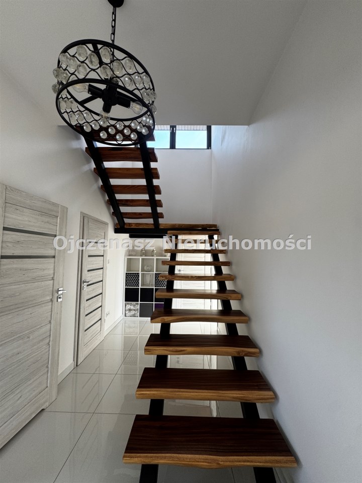 Na górę prowadzą przepiękne schody wykonane z naturalnego drewna.