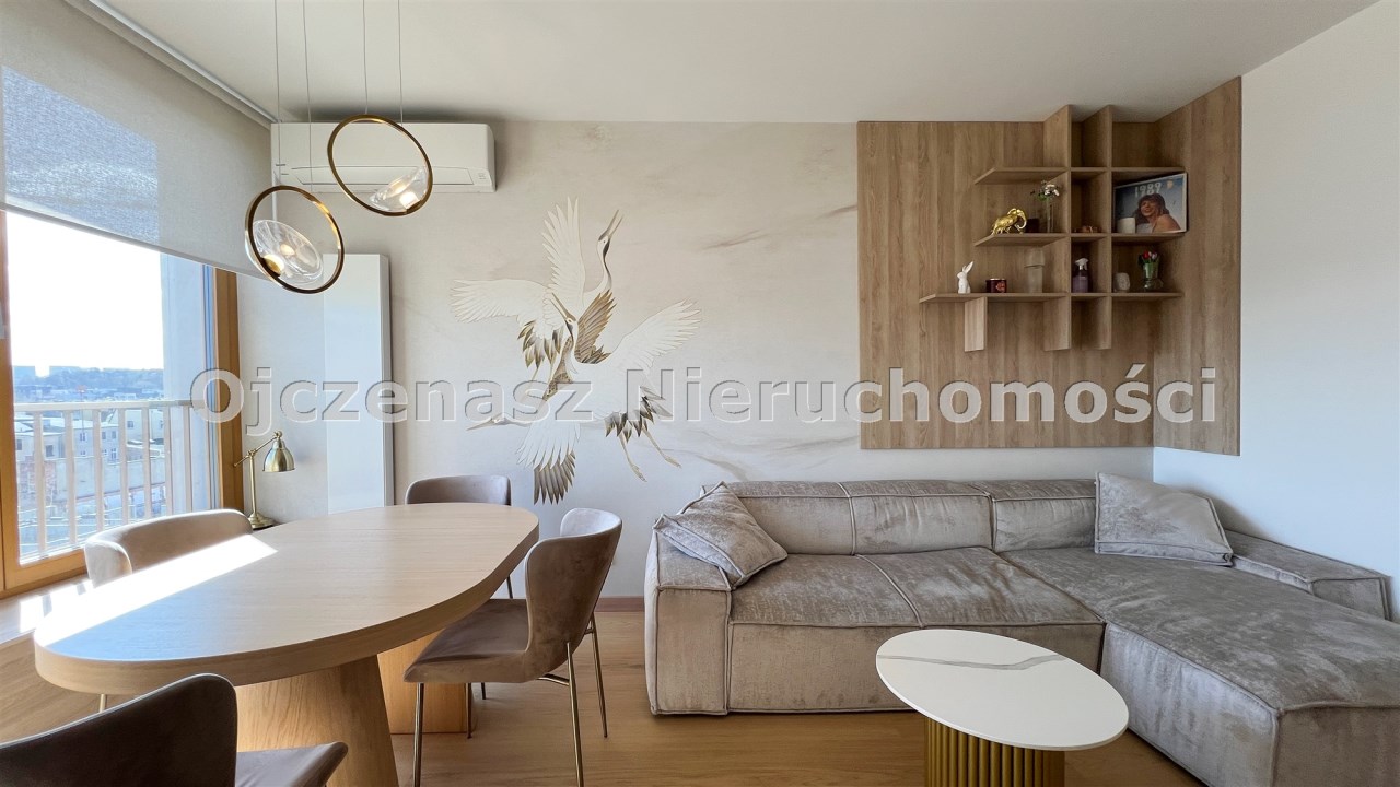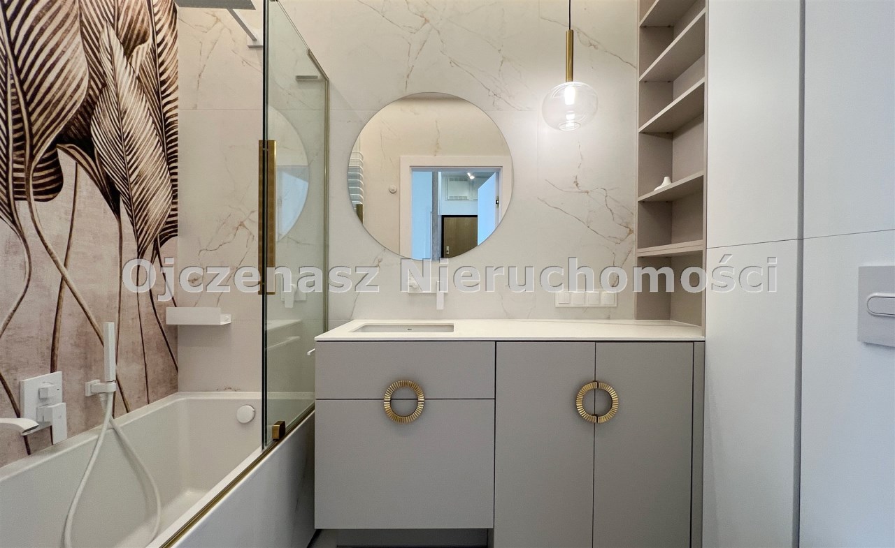 Mieszkanie zostało zaprojektowane przez architekta wnętrz i wykończone w najwyższym standardzie, z wykorzystaniem wysokiej klasy materiałów. Większość zabudowy oraz elementów wyposażenia wykonano na wymiar, co zapewnia nie tylko estetykę, ale i maksymalną funkcjonalność przestrzeni.