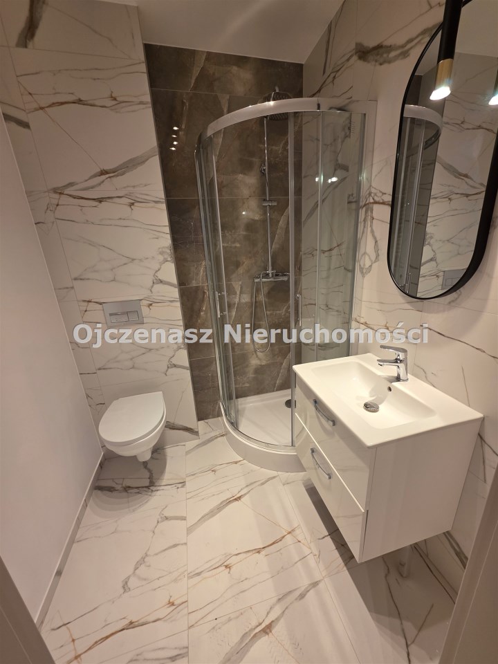 Mieszkanie zostało kompleksowo wyremontowane z dbałością o detale i funkcjonalność przestrzeni. W lokalu znajduje się salon z aneksem kuchennym, oddzielna sypialnia oraz łazienka z prysznicem. Całość została urządzona w nowoczesnym stylu, a wszystkie meble i sprzęty są nowe.