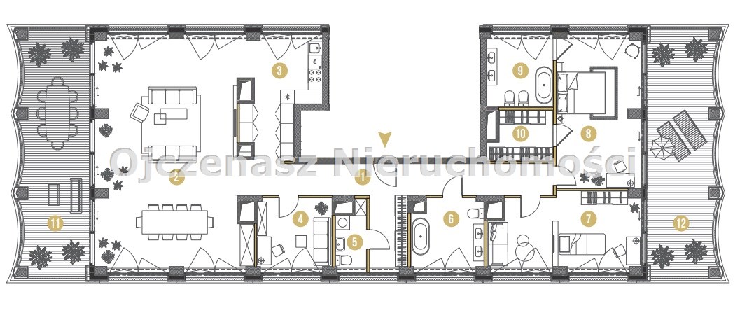 To propozycja absolutnie unikalna – najwyższe piętro, panoramiczne przeszklenia, dwie strony świata i dwa ogromne tarasy, które razem tworzą prywatną strefę wypoczynku w samym sercu miasta.